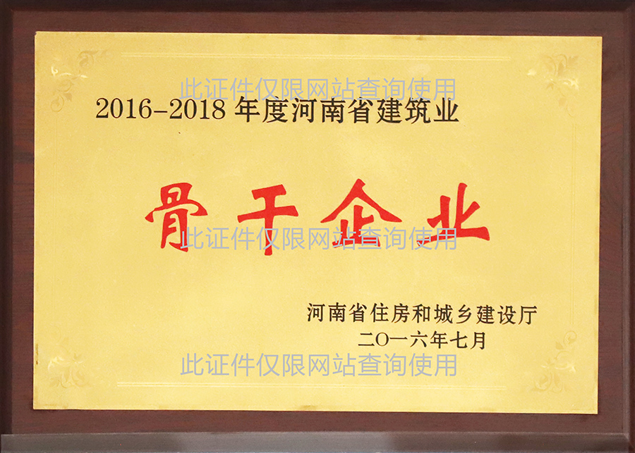2016-2018年度河南省建筑業(yè)骨干企業(yè)
