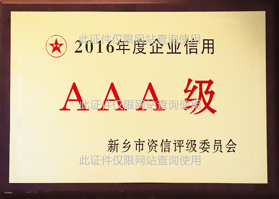 2016年度企業(yè)信用AAA級
