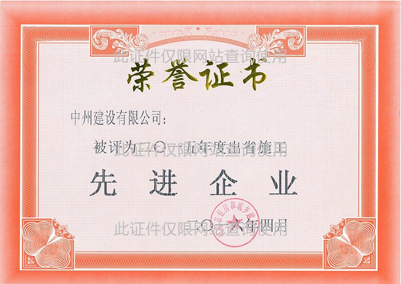 2015年度出省施工先進企業(yè)